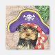 Arrf, ye matey! Fly the Jolly Roger and take to the high seas with this cute Yorkshire Terrier pup wearing a pirate hat and bandanna on an old map background. Great design to appeal to all Pirate and Yorkie lovers on land and sea alike.