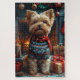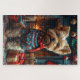 Yorkipoo Dog With Christmas Gifts Fireplace Jigsaw Puzzle