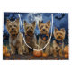 Unleash the spooky spirit with this eerie Halloween design featuring a pack of dogs under a dark, moonlit sky, surrounded by flying bats and glowing pumpkins. Perfect for those who love a touch of frightful fun with their furry friends!