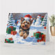 A playful Yorkipoo runs joyfully through the snowy winter scene, wearing a festive red Christmas hat. This adorable design highlights the breed’s fluffy coat, bright expression, and affectionate personality while capturing the warmth and joy of the holiday season. A delightful winter moment full of festive cheer.