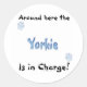 We all know who is in charge at your house. With this fun dog design on assorted apparel and office supplies you can show the world that around here the Yorkshire Terrier is in charge.
