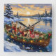 Yorkshire Terrier Christmas Boat Holiday Square Wall Clock