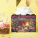 A charming Yorkshire Terrier relaxes by the fire on Christmas Eve. This warm and inviting painting brings classic holiday comfort to any home or gift collection.