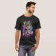 I give wanted to give this a 4 instead of a 5 because these Basic DARK T0shirts run unexpectedly SLIM or Narrow. Which is great if you do not have a potbelly, but I have a paunch. It isn't the shirt's fault that I've got a beer belly. The design and shirt itself is a quality cotton shirt. The color is more of a deep purple, but still a very pretty color. The Basic DARK T-shirts run a bit SLIMMER than the Basic Ts. The neck is a fraction narrower (or seems to be narrower) also. I'm a paunchy middle-aged woman and my neck is 12 inches (31cm) thick and the neckline fell about the same as in the photo of the man, and I had the desire to tug it a bit. So if you're a thick necked man or like loose shirts, be aware these are slimmer shirts. Once I get rid of my lockdown paunch it'll look great. The shirt washed well in cold water with no apparent bleeding. We don't have a dryer, so it hung dry. Did not shrink. Love the colors and the design. The design looks smaller on my shirt than it does on the model on-line. But still, it looks good on the shirt. The printing looks as it does on the model, just the size seems fractionally smaller. Washed garment in cold water, hung dry and design appeared unaffected.