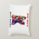 The cushion is small to medium sized. It can be washed. It is well constructed. The material used is pleasant and feels decent quality. It has a very slight plush feel which is good. It is well labelled and its care clearly stated. Theres nothing not to like about it. All in all a good item. The deduction of one star overall is due to long delays in delivery to the UK. It's not clear if this was due to Zazzle or somewhere else in the chain as I did not receive status updates of dispatch or progress. I cannot comment anymore on that other than to say that was our experience but it may not be the same for you. The printing was surprisingly close to what we were expecting. Its an art piece and on material so its hard to assess the precision of printing but it seems close to the original. The soft lines are reproductions of the original. The colour is a fair reflection of the painting. This was printed in the US and it looks like US quality. No issues.
