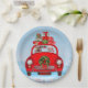 Yorkshire Terrier Dog In Car With Santa Claus Paper Plate