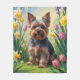 Yorkshire Terrier Dog Spring Flowers Painting Fleece Blanket