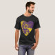 I give wanted to give this a 4 instead of a 5 because these Basic DARK T0shirts run unexpectedly SLIM or Narrow. Which is great if you do not have a potbelly, but I have a paunch. It isn't the shirt's fault that I've got a beer belly. The design and shirt itself is a quality cotton shirt. The color is more of a deep purple, but still a very pretty color. The Basic DARK T-shirts run a bit SLIMMER than the Basic Ts. The neck is a fraction narrower (or seems to be narrower) also. I'm a paunchy middle-aged woman and my neck is 12 inches (31cm) thick and the neckline fell about the same as in the photo of the man, and I had the desire to tug it a bit. So if you're a thick necked man or like loose shirts, be aware these are slimmer shirts. Once I get rid of my lockdown paunch it'll look great. The shirt washed well in cold water with no apparent bleeding. We don't have a dryer, so it hung dry. Did not shrink. Love the colors and the design. The design looks smaller on my shirt than it does on the model on-line. But still, it looks good on the shirt. The printing looks as it does on the model, just the size seems fractionally smaller. Washed garment in cold water, hung dry and design appeared unaffected.