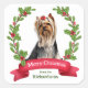 Yorkshire Terrier Holly Wreath Christmas Square Sticker