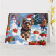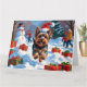 Yorkshire Terrier in Snow with Christmas Hat Card