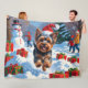 Yorkshire Terrier in Snow with Christmas Hat Fleece Blanket