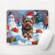 Yorkshire Terrier in Snow with Christmas Hat Mouse Mat