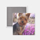 Yorkie's are very special little dogs with a big personality. This photograph is of a very cheeky little girl sitting in a bed of purple flowers.