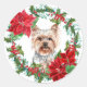 Yorkshire Terrier Poinsettia Holly Holiday Wreath Classic Round Sticker