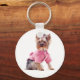 Diva Yorkshire Terrier Puppy Dog in Pink Coat on White Background Keychain