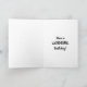 This card is great fun and good quality. I loved the humour inside and on the back. There is the opportunity to change the orientation of this card from landscape to portrait, which I did. It is relatively straightforward to amend the typeface to fit the new orientation. It was well packaged with no plastic. The printing on this card is excellent.