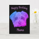Psychedelic birthday card. Black background with a purple tinted drawing of a Yorkshire terrier dog. Easily personalize this card using the template text feature.