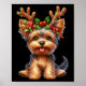 Yorkshire Terrier Reindeer Santa Hat Xmas Lights C Poster