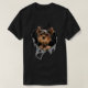 I give wanted to give this a 4 instead of a 5 because these Basic DARK T0shirts run unexpectedly SLIM or Narrow. Which is great if you do not have a potbelly, but I have a paunch. It isn't the shirt's fault that I've got a beer belly. The design and shirt itself is a quality cotton shirt. The color is more of a deep purple, but still a very pretty color. The Basic DARK T-shirts run a bit SLIMMER than the Basic Ts. The neck is a fraction narrower (or seems to be narrower) also. I'm a paunchy middle-aged woman and my neck is 12 inches (31cm) thick and the neckline fell about the same as in the photo of the man, and I had the desire to tug it a bit. So if you're a thick necked man or like loose shirts, be aware these are slimmer shirts. Once I get rid of my lockdown paunch it'll look great. The shirt washed well in cold water with no apparent bleeding. We don't have a dryer, so it hung dry. Did not shrink. Love the colors and the design. The design looks smaller on my shirt than it does on the model on-line. But still, it looks good on the shirt. The printing looks as it does on the model, just the size seems fractionally smaller. Washed garment in cold water, hung dry and design appeared unaffected.