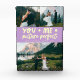 Whimsical and playful wedding keepsake featuring 3 photos of the newlyweds with a typography text that says "you + me = picture perfect." Lemon wisteria.