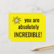 How about this adorable sunny yellow postcard that says "you are absolutely INCREDIBLE!" in big letters next to a super happy, smiling sun?