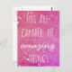 This lovely postcard features a pink bokeh design and the motivational phrase "You are capable of amazing things." Perfect to send to a friend or a loved one, or to keep for yourself.