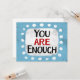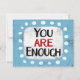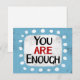 "You Are Enough" is a cute inspirational or motivational quote with a white accent shape surrounded by white textured whimsical dots.