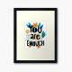 A positive inspirational quote design featuring the phrase "you are enough" using hand drawn letters with personality. The motivational message is perfect for anyone looking for a boost of positivity. Please Note: The frame IS NOT INCLUDED.