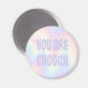Trendy fridge magnet featuring the text "you are enough" in light purple on a soft pastel rainbow pattern background.