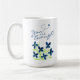 This pretty coffee mug expresses a sentiment that we all need to hear more often. It reads, "You are Enough!" The artwork is pretty blue watercolor flowers, and there is a butterfly making a heart shape in the sky.