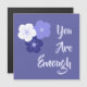 Raise self esteem with this positive message of validation and appreciation! Great gift idea for friends and family or as a positive affirmation for yourself. This design includes flowers in shades of purple and the text "You Are Enough".