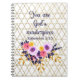 You Are God's Masterpiece in blue script with floral motif, on a white background with diamond design markings. This design is based on Ephesians 2:10. You are a true work of art, a unique person created by Almighty God with a specific path and purpose. This notebook would make an inspirational and encouraging gift for yourself, friend or family member.