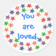 Two circles of colourful stars surround the statement, "You are loved," printed on stickers. Share the love. Thank you for shopping CherylsArt on Zazzle: http://www.zazzle.com/CherylsArt*/