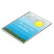 The design features a bright shiny sun, clouds and green grass on blue gradient stripes. The text is fully customisable.