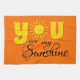 You are my sunshine text design with yellow, shiny sun decoration. It is possible to change the background colour and to add different one to the design with your choice.