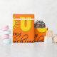 You are my sunshine text design with yellow, shiny sun decoration. It is possible to change the background colour and to add different one to the design with your choice.