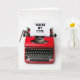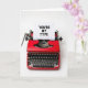 This greeting card centers on a bright red vintage typewriter set against a white background. The view is slightly from above, letting you see the round black keys with white letters and numbers clearly. A white sheet of paper sits in the roller, and across the top it reads, “YOU’RE MY TYPE,” printed in classic typewriter-style lettering. Silver metal details like the knobs and return lever add contrast and texture. The bold red color draws the eye, while the simple layout keeps the focus on the message. It’s a smart, affectionate card that mixes romance with a clever nod to old-fashioned writing, making it a great choice for Valentine’s Day or any moment you want to say someone truly fits your heart ❤️💌🍫.