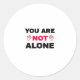The "You Are Not Alone" design features a comforting and inclusive theme. It typically incorporates warm colours, such as soothing blues or soft pastels, to evoke a sense of reassurance. The central focus might be a symbolic image like an open hand, reaching out or a supportive embrace. Text elements often include the phrase "You Are Not Alone" in a friendly and legible font. The overall design aims to convey a message of solidarity, empathy, and support.