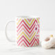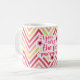 Mother's Day mug featuring You are the Best Mummy quote with hand drawn flowers against a bright chevron background.