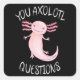 Lovely design featuring a cute axolotl and the quote "You axolotl questions". Good for the young and the old.