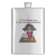 The product is a good size and came exactly as it was pictured. The lid is not attached to the flask, which could be dangerous on drunken nights... The print came out surprisingly well and looks very sharp. Would definitely recommend.