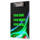 This clipboard has a motivational saying on it, "You can, you must, you will."