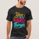 I give wanted to give this a 4 instead of a 5 because these Basic DARK T0shirts run unexpectedly SLIM or Narrow. Which is great if you do not have a potbelly, but I have a paunch. It isn't the shirt's fault that I've got a beer belly. The design and shirt itself is a quality cotton shirt. The color is more of a deep purple, but still a very pretty color. The Basic DARK T-shirts run a bit SLIMMER than the Basic Ts. The neck is a fraction narrower (or seems to be narrower) also. I'm a paunchy middle-aged woman and my neck is 12 inches (31cm) thick and the neckline fell about the same as in the photo of the man, and I had the desire to tug it a bit. So if you're a thick necked man or like loose shirts, be aware these are slimmer shirts. Once I get rid of my lockdown paunch it'll look great. The shirt washed well in cold water with no apparent bleeding. We don't have a dryer, so it hung dry. Did not shrink. Love the colors and the design. The design looks smaller on my shirt than it does on the model on-line. But still, it looks good on the shirt. The printing looks as it does on the model, just the size seems fractionally smaller. Washed garment in cold water, hung dry and design appeared unaffected.
