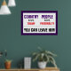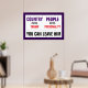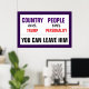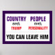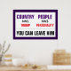 Country over Trump. People over Personality. Trumpism is a bad, toxic relationship. Remind your neighbours that they can leave Trump and Trumpism behind at any time, just like they've left a bad job. It's time to put all of our people over his egomaniacal malignant narcissist cult of personality. Design description: The background layer is a dark purple, signifying putting people over political party. Over that is a white rectangle with a light grey border. The top third has text divided into two halves. On the left side, it reads, "Country over Trump." On the right side, it reads, "People over personality." The words country and people are both in dark purple sans serif font, the word over is in black handwriting style font, and the words Trump and Personality are in red sans serif font, both words approximately the same size. Because personality is a long word, that means the word Trump is in relatively small text, making his name insignificant. Below that, in that, at the top of the lower third, is a line in the same light grey as the rectangle border. Below that line, in large black all caps sans serif font are the words, "You can leave him." Same design on both sides.