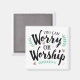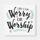Typography design with modern brush script and decorative type surrounded by floral and greenery accents that states, "You Can Worry or Worship.”