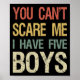 'You Can't Scare Me I Have Five Boys' funny quote for a mum of boys or a dad of boys.