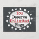 Bold text reading "You Deserve Unlimited Hugs" is centred against a grey background. The black text sits on a white circle with large textured white dots around it, providing a playful contrast against the solid colour backdrop.