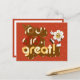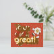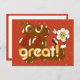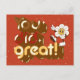 Celebrate achievements with this retro-inspired 'You Did Great!' postcard featuring playful typography and a cheerful flower mascot. Perfect for graduations, promotions, or any occasion worth celebrating! Customise the colours of the text, flower, and background to match your style or the recipient's favourite colours. A fun and versatile way to spread positivity and encouragement!