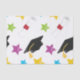 "You did it graduation cap and diploma" is the perfect tissue paper for your graduation gifts. Set upon a white background, this illustration is adorned with black graduation caps with gold tassels, green, purple, blue and yellow stars and a rolled up diploma. Place your order today!