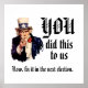 Uncle Sam is point the finger at everyone who vote for retribution over joy or thought that Biden was too goofy and Kamila hadn’t done “enough” to earn their vote. Also, every elected official who has refused to stand up for democracy. Yes, it was YOU who got us into this mess. Now, fix it over the next election or two.